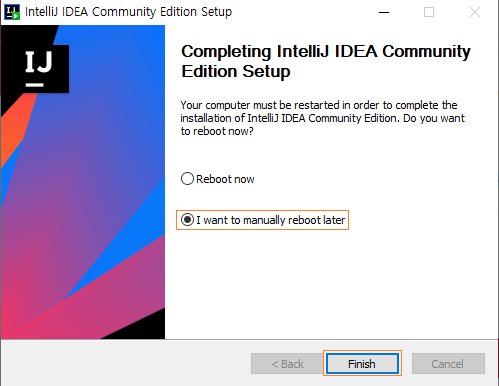 재부팅을 나중에 하려면 I want to manually reboot later(v)