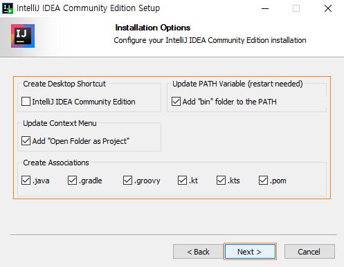 IntelliJ 설치 옵션