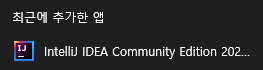 시작 메뉴에 설치한 IntelliJ가 추가된 모습