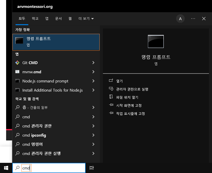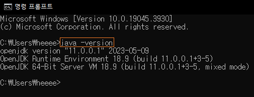 명령 프롬프트를 통해 자바 개발도구가 정상적으로 설치되었는지 확인할 수 있다.